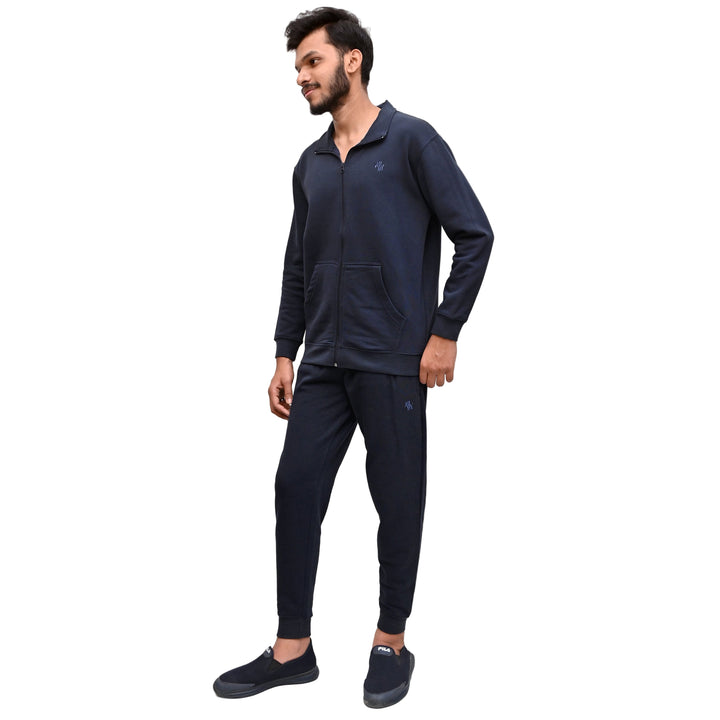 The collar-style jacket gives a smart and semi-formal touch, setting it apart from regular hooded tracksuits. Paired with matching jogger pants, it’s ideal for gym sessions, outdoor walks, or casual outings. The ribbed cuffs and waistband ensure a perfect fit, while side pockets provide practicality and style.