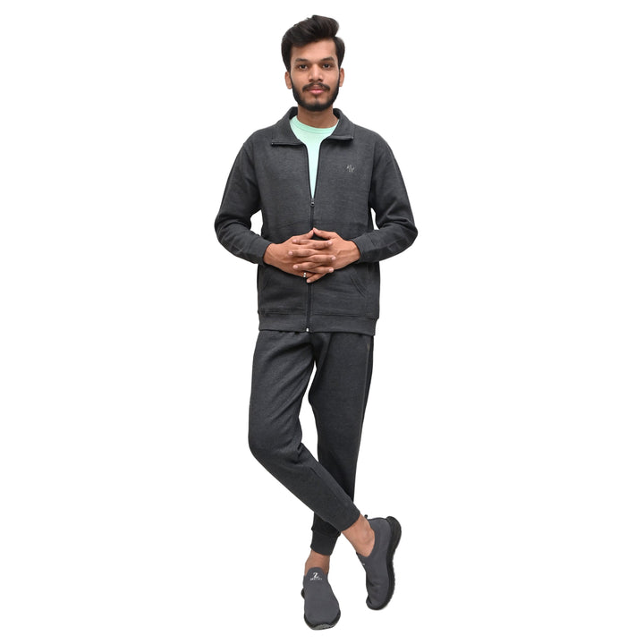 The collar-style jacket gives a smart and semi-formal touch, setting it apart from regular hooded tracksuits. Paired with matching jogger pants, it’s ideal for gym sessions, outdoor walks, or casual outings. The ribbed cuffs and waistband ensure a perfect fit, while side pockets provide practicality and style.