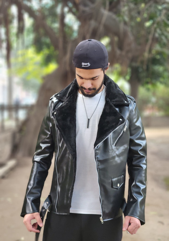 BYKER-PU-BLACK LEATHER JACKET